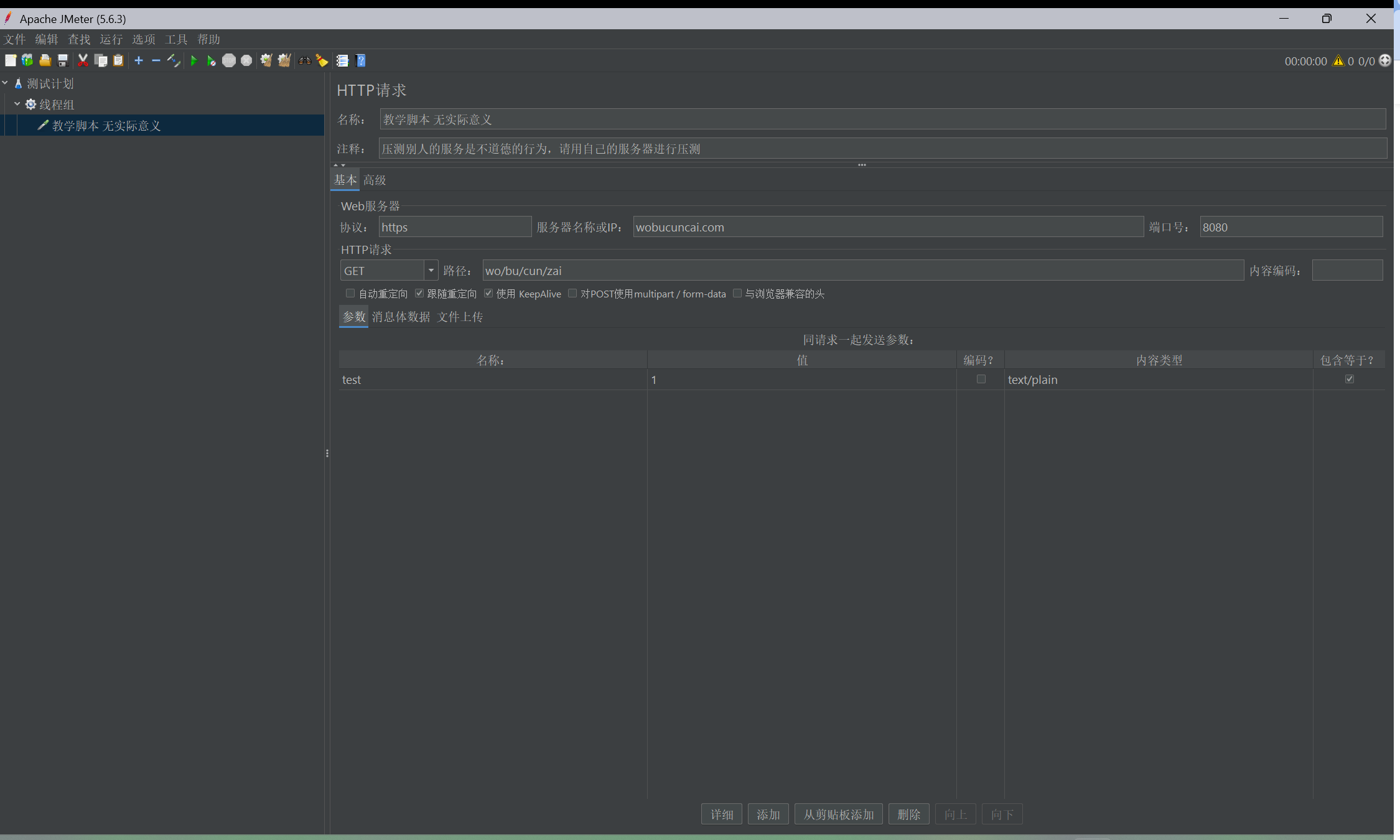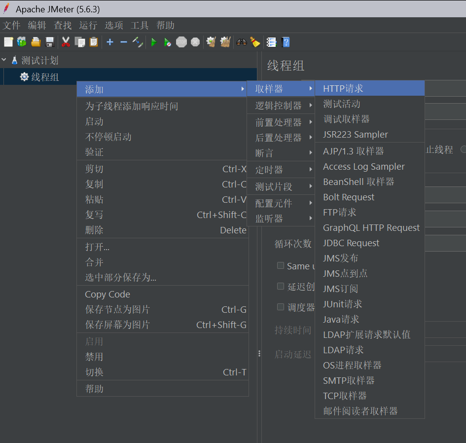 **循环次数:**如果你勾选了永远那么就会一直进行压力测试,需要配合调度器持续时间来控制整个压力测试过程的时间,不勾选则是按照您设定的次数对线程数中的数量进行循环,例如 100线程数 循环5次即模拟100个用户 同时请求接口 一共请求5次。