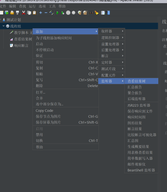 添加结果树 验证或运行时查看运行结果 原则上来说红色是失败,绿色是成功 (不绝对,具体要看返回数据和一些其他的数据)