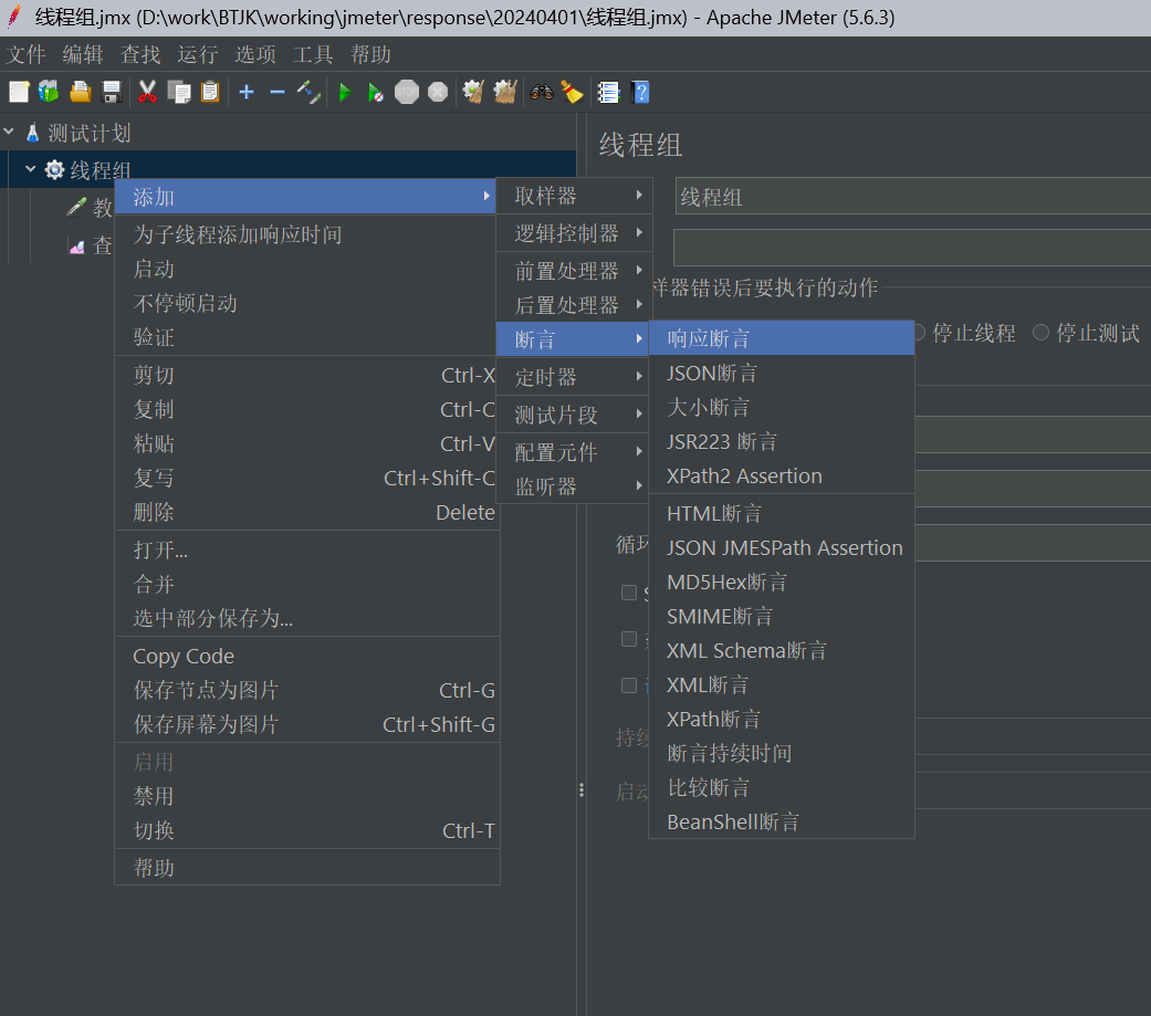添加断言 机械性的确认单次请求是否成功(原理是根据返回的结果确认是否成功,例如当设置断言为success时 你的返回结果如果包含这个字符串,那么就认定这是一次成功的请求,否则为失败请求,影响最终的通过了,需要特别注意的是,当返回的结果数据量过大是,断音还会对请求的时长产生一定量的影响,实际情况需要综合考虑)