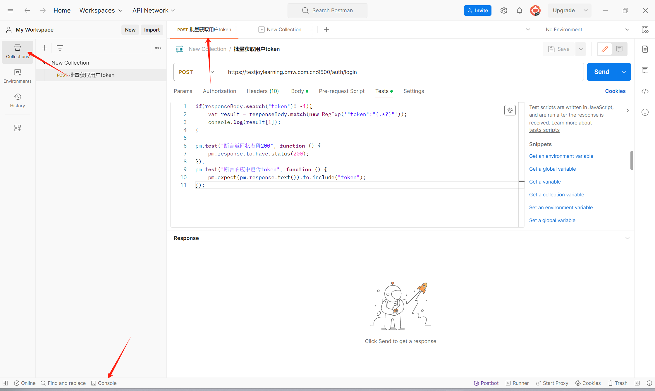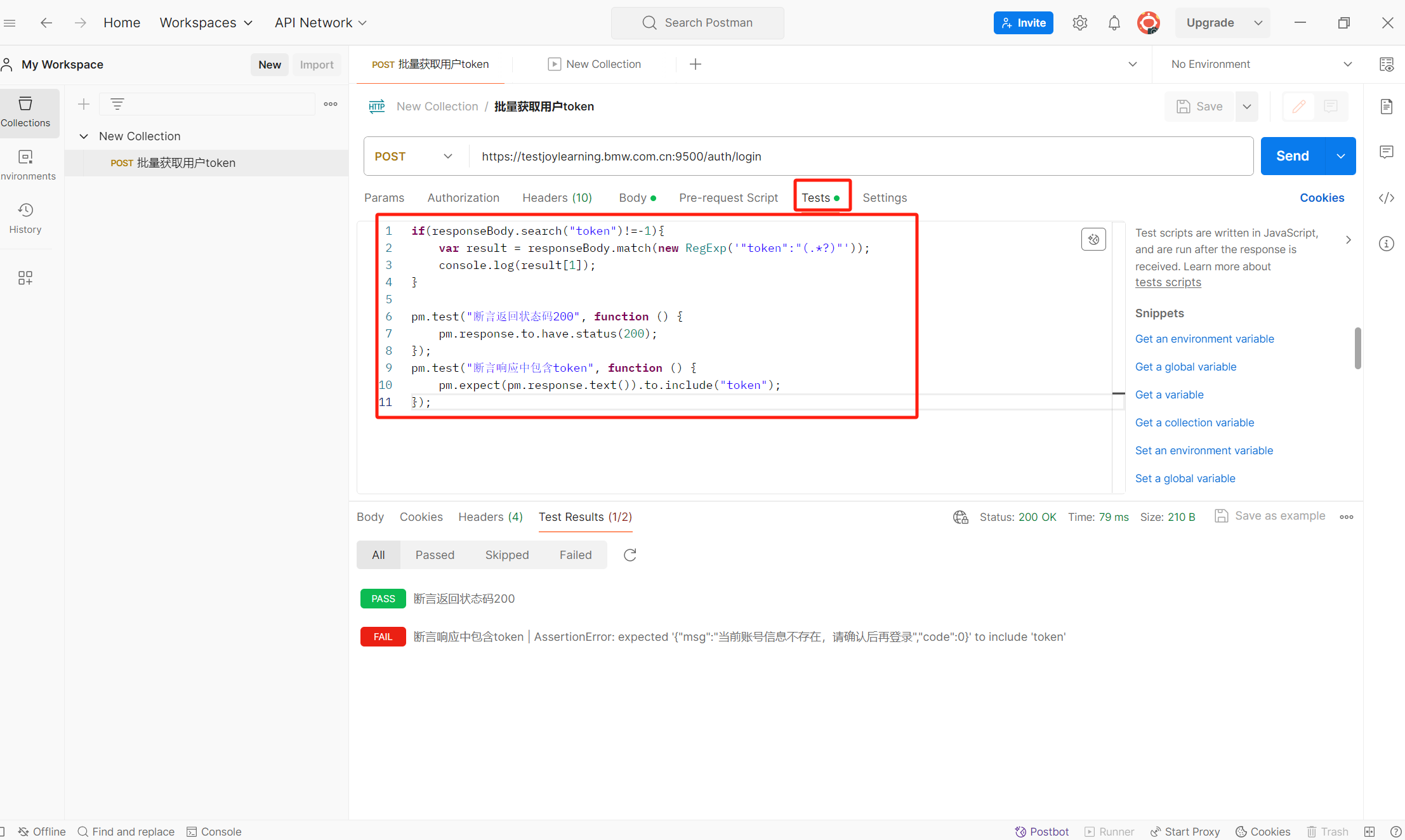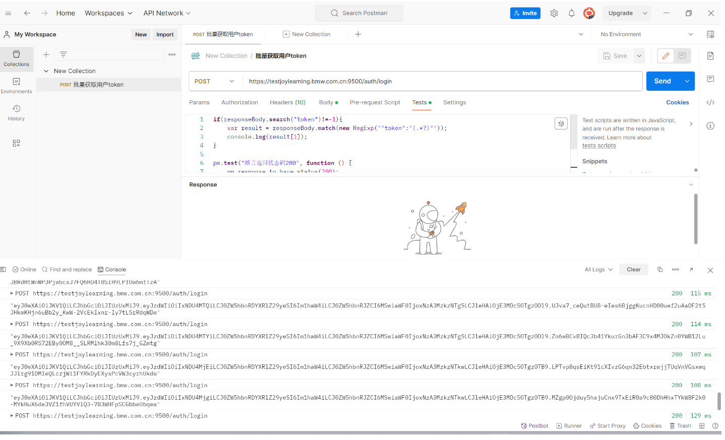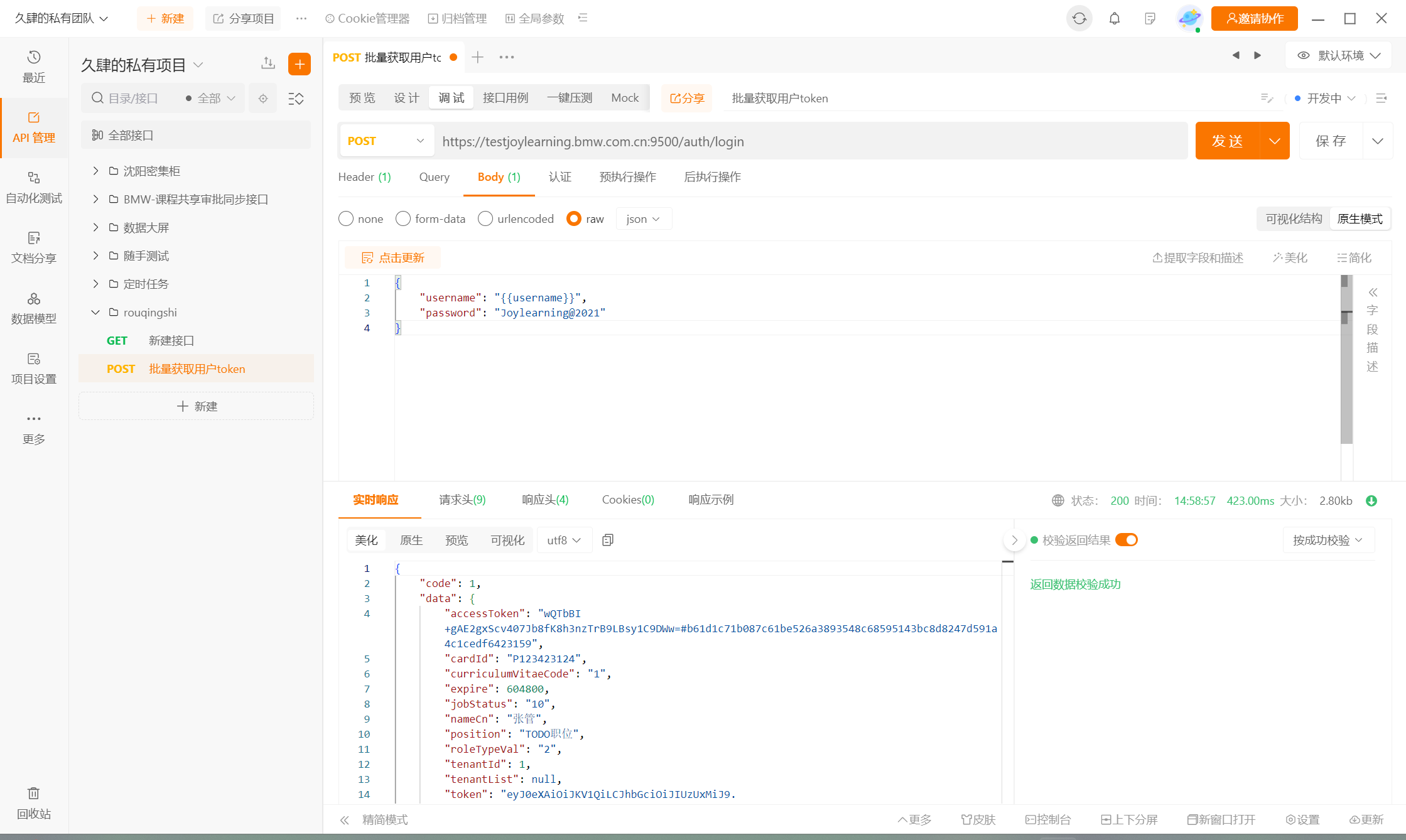 批量获取用户的token https://testjoylearning.bmw.com.cn:9500/auth/login 登陆接口 参数 :{