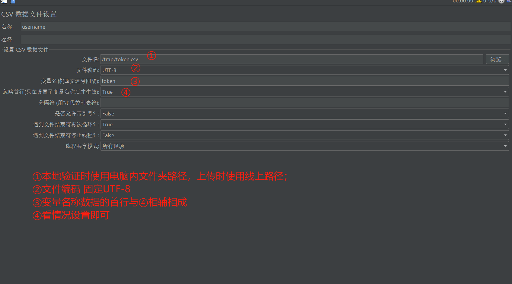 9.如果在参数中也需要设置变量则需要 在增加一个csv数据文件设置 其他同理